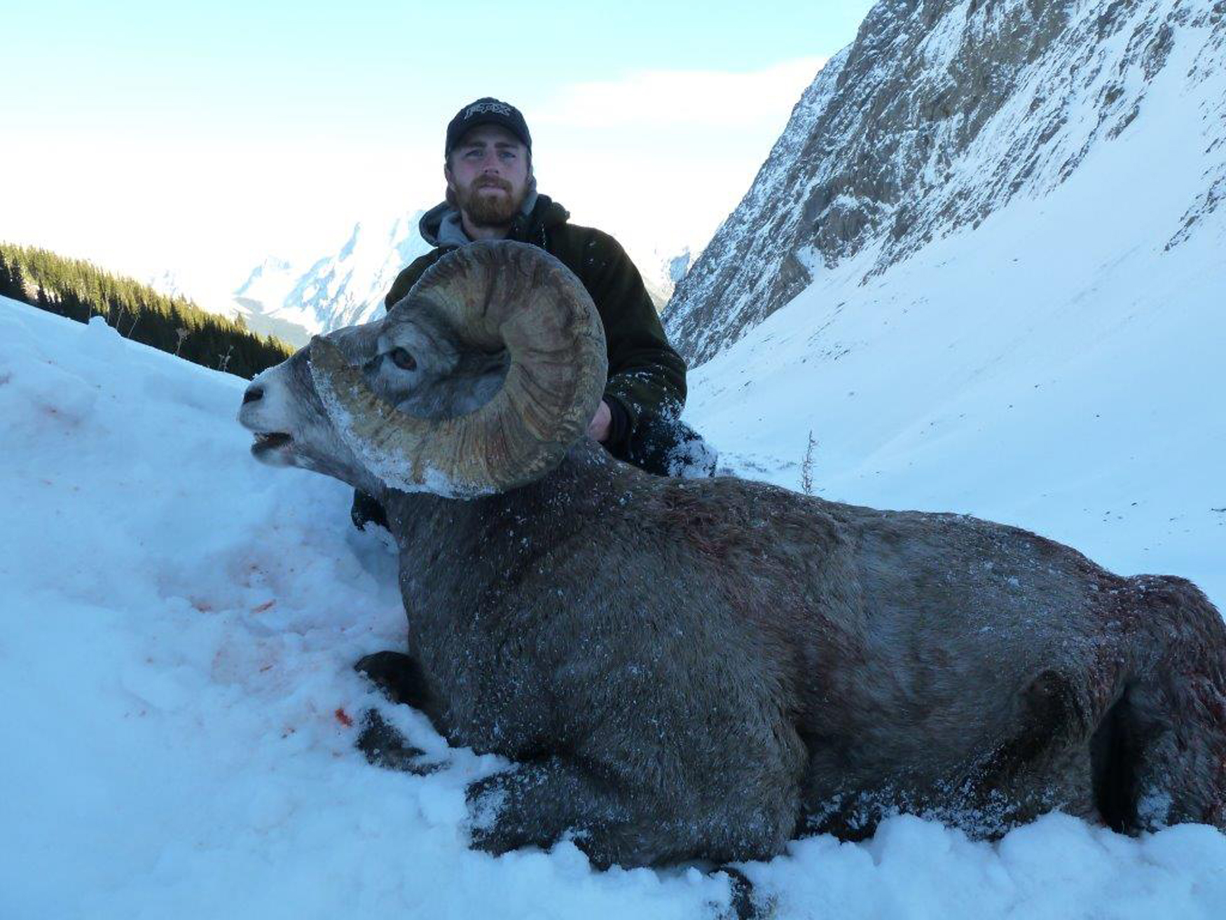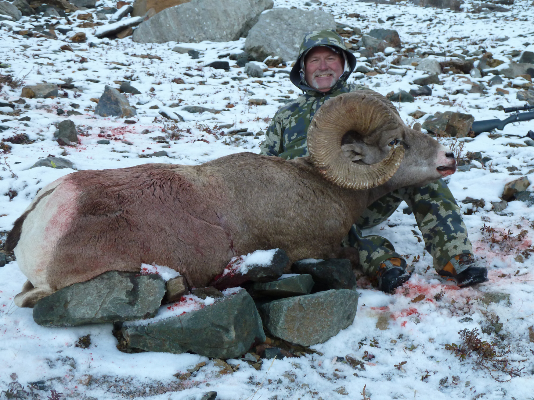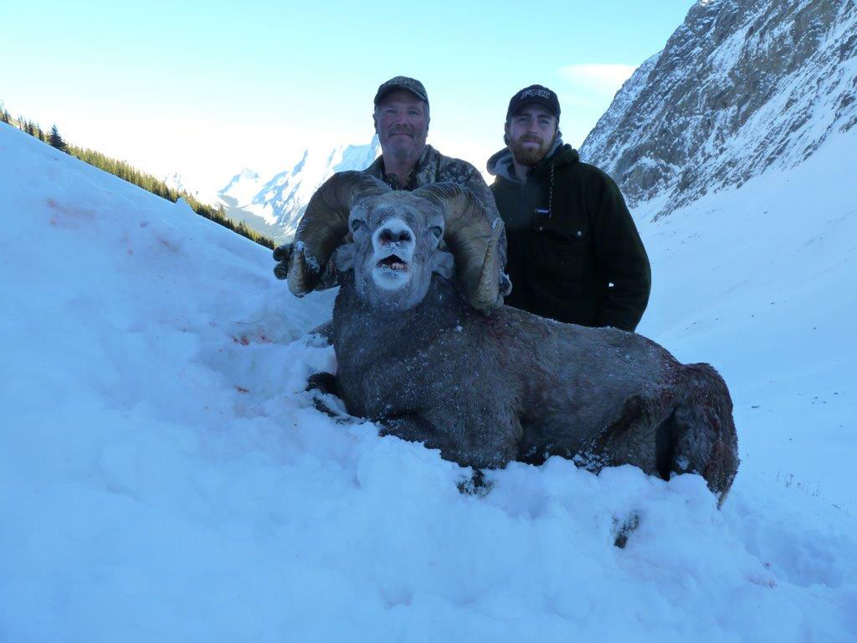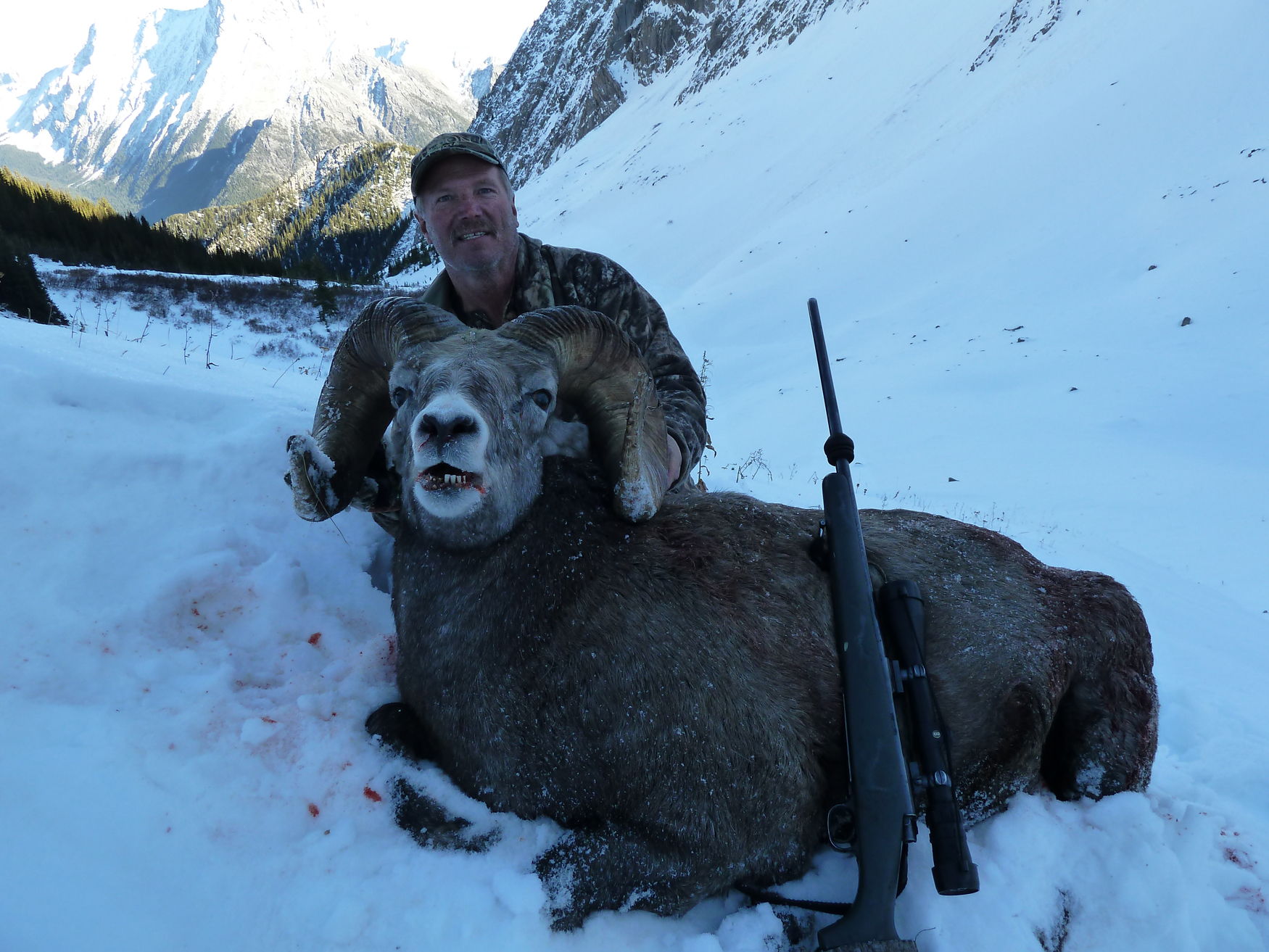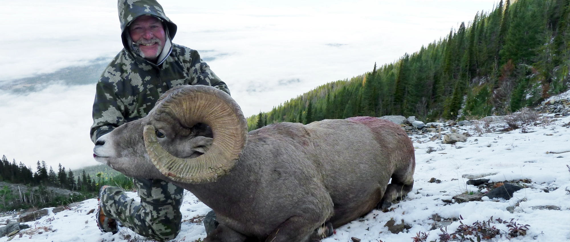 There are two distinctly separate bands of sheep in our territory. It is common to see many sheep during your trip. We have consistently produced trophy quality rams in the 160 – 175 class range over the years. Bighorns in the 4-22 and 4-24 region are restricted to a full curl. As we are on a quota, we are limited to 2 – 3 hunters per year and these hunts book well in advance. Whether you are completing your slam or have just begun, we are one of only a handful of outfitters that can offer you a top quality Rocky Mountain Bighorn Hunt.
