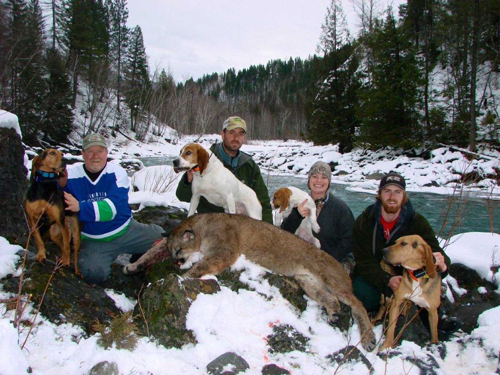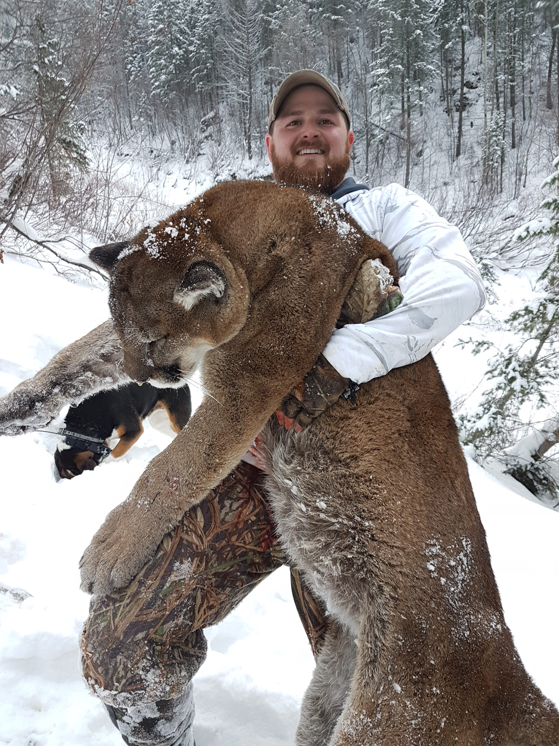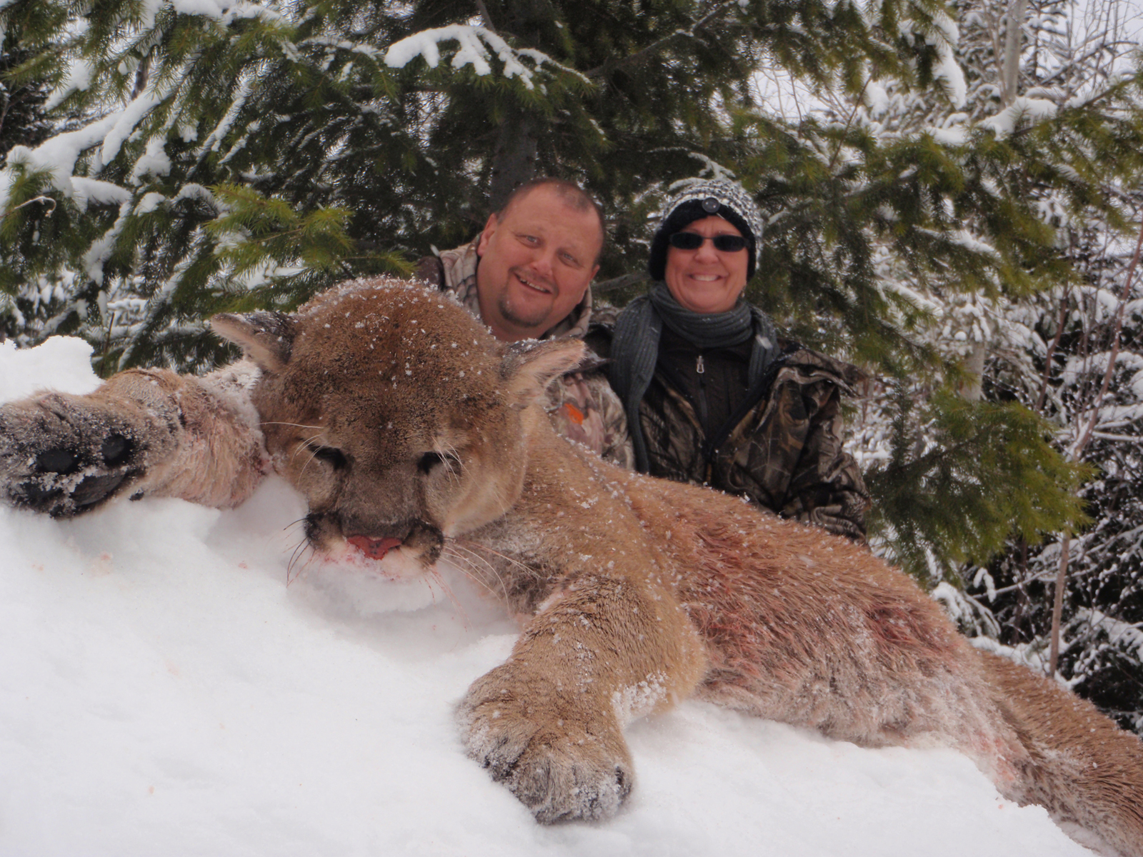 With the abundance of ungulates that are available in the Kootenays, there is little trouble sustaining a healthy cougar population. Book cats are taken on a regular basis from this area. We have a high success rate hunting cougars during the winter when their size can be determined by the track. Baying hounds in full pursuit of North America’s largest cat, makes this predator hunt one of the most thrilling.