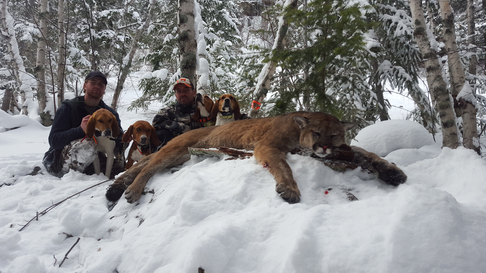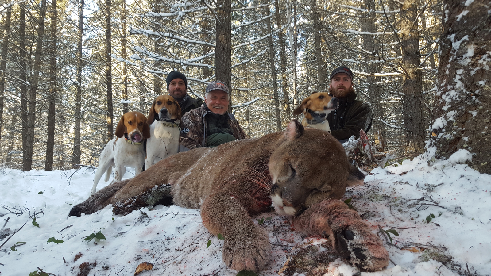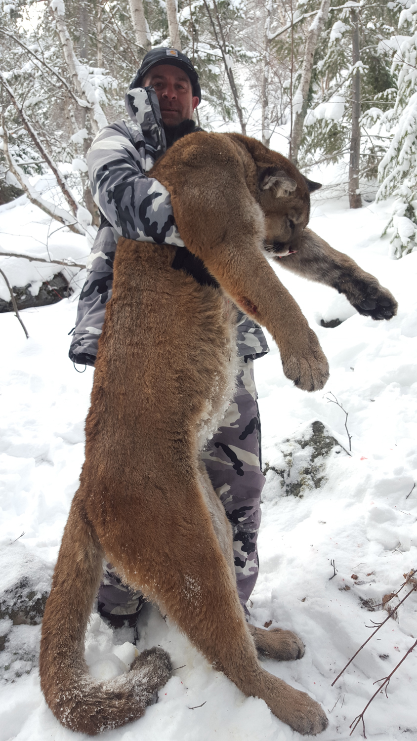 With the abundance of ungulates that are available in the Kootenays, there is little trouble sustaining a healthy cougar population. Book cats are taken on a regular basis from this area. We have a high success rate hunting cougars during the winter when their size can be determined by the track. Baying hounds in full pursuit of North America’s largest cat, makes this predator hunt one of the most thrilling.